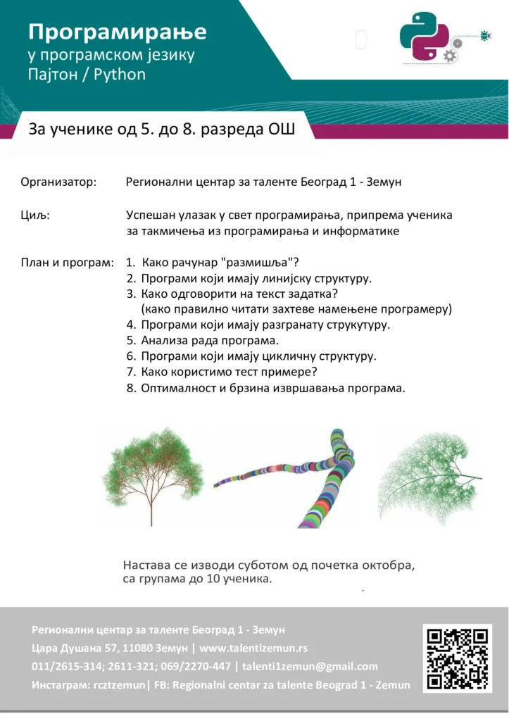 Информатика Обавештење Програмирање у програмском језику Пајтон / Python Никола Вигњевић авг 23, 2024 0 За ученике од 5. до 8. разреда ОШ Python