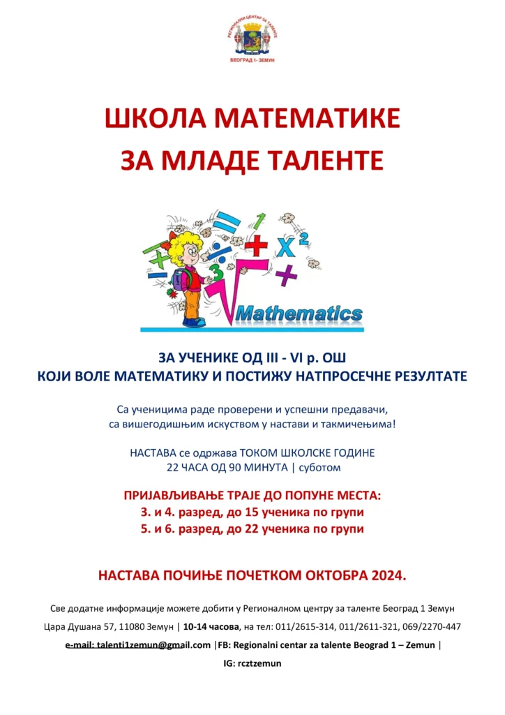 Школа математике за младе таленте организује се и ове школске године. Настава почиње почетком октобра 2024. Пријаве у току!